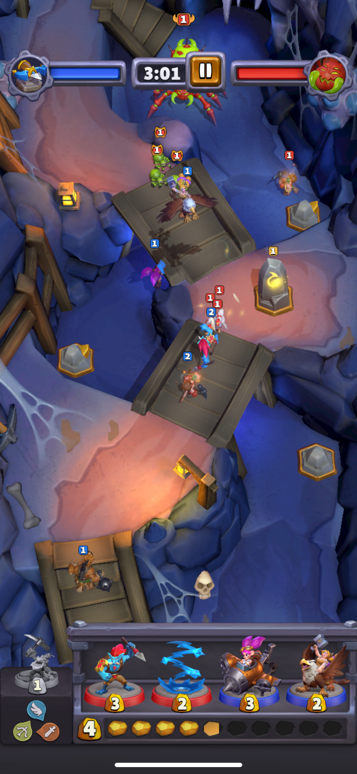 マップもいろいろある。キャラ特性やデッキ構成だけじゃなく、マップの高低差をどれだけ上手く活かせるかなど、戦略性がかなり高く、個人的には最高に面白い。若干エラー落ちが多いが、ローンチしたばっかりなので気にせず★5。