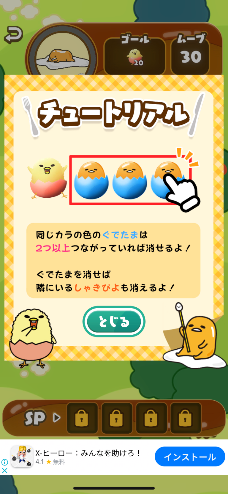 同じ種類の「ぐでたま」をつなげてサポートアイテムを作るシステムについても分かり易く教えてくれます。